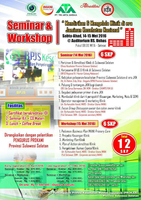 24 Apr Date 24 April 2016 Categories Prokami Wilayah Seminar dan Workshop “Mendirikan dan Mengelola Klinik di Era JKN”